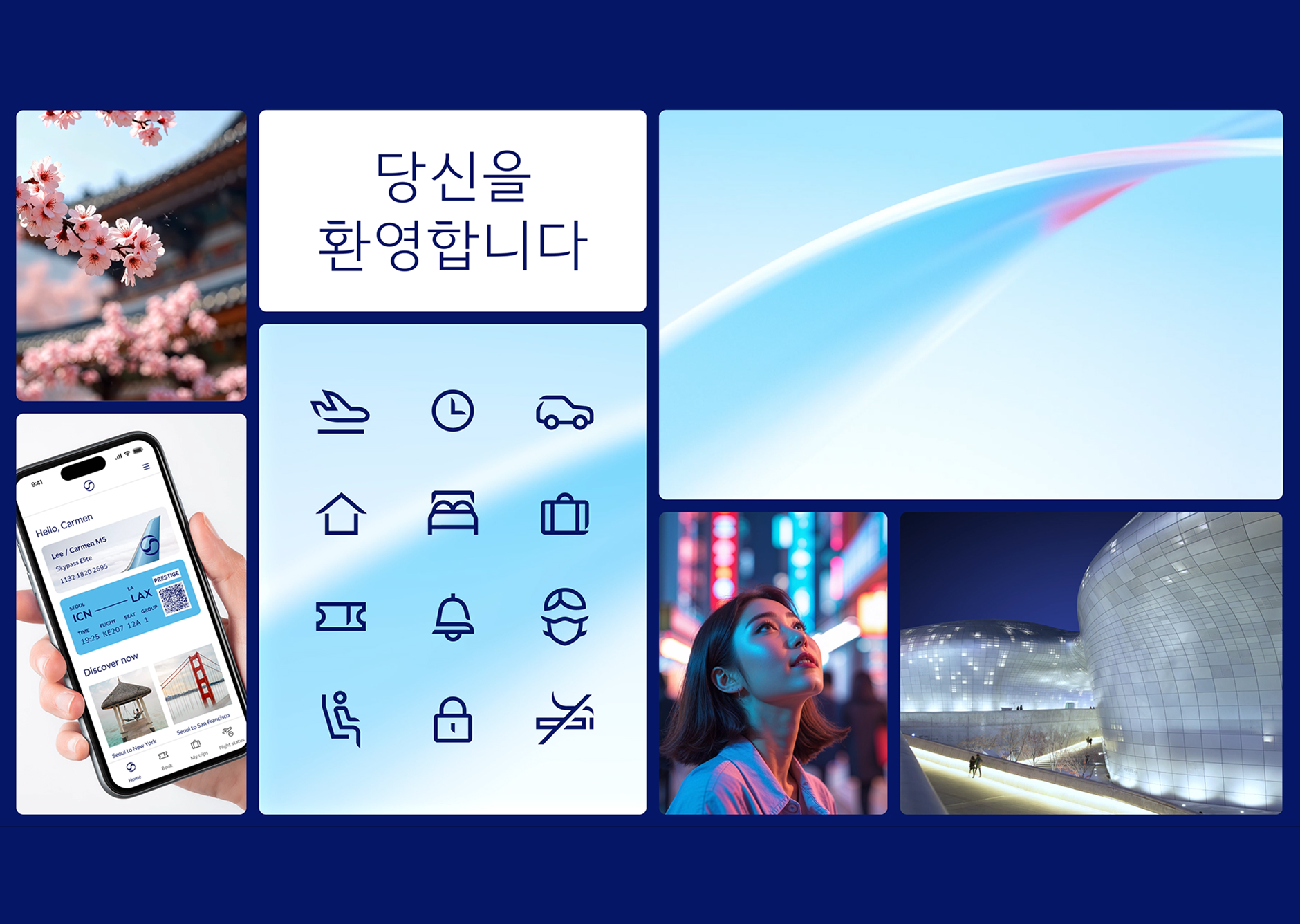 I led the digital art direction and design system development, creating a modular framework that guided all digital executions. The system defined scalable UI components, motion principles, and interaction patterns that captured the calm sophistication of the new brand. Working closely with the client, we ensured that the digital toolkit supported accessibility, performance, and cross-platform consistency. The result: a cohesive experience that bridges brand storytelling with functional clarity—reintroducing Korean Air to the world as a symbol of modern Korean elegance.